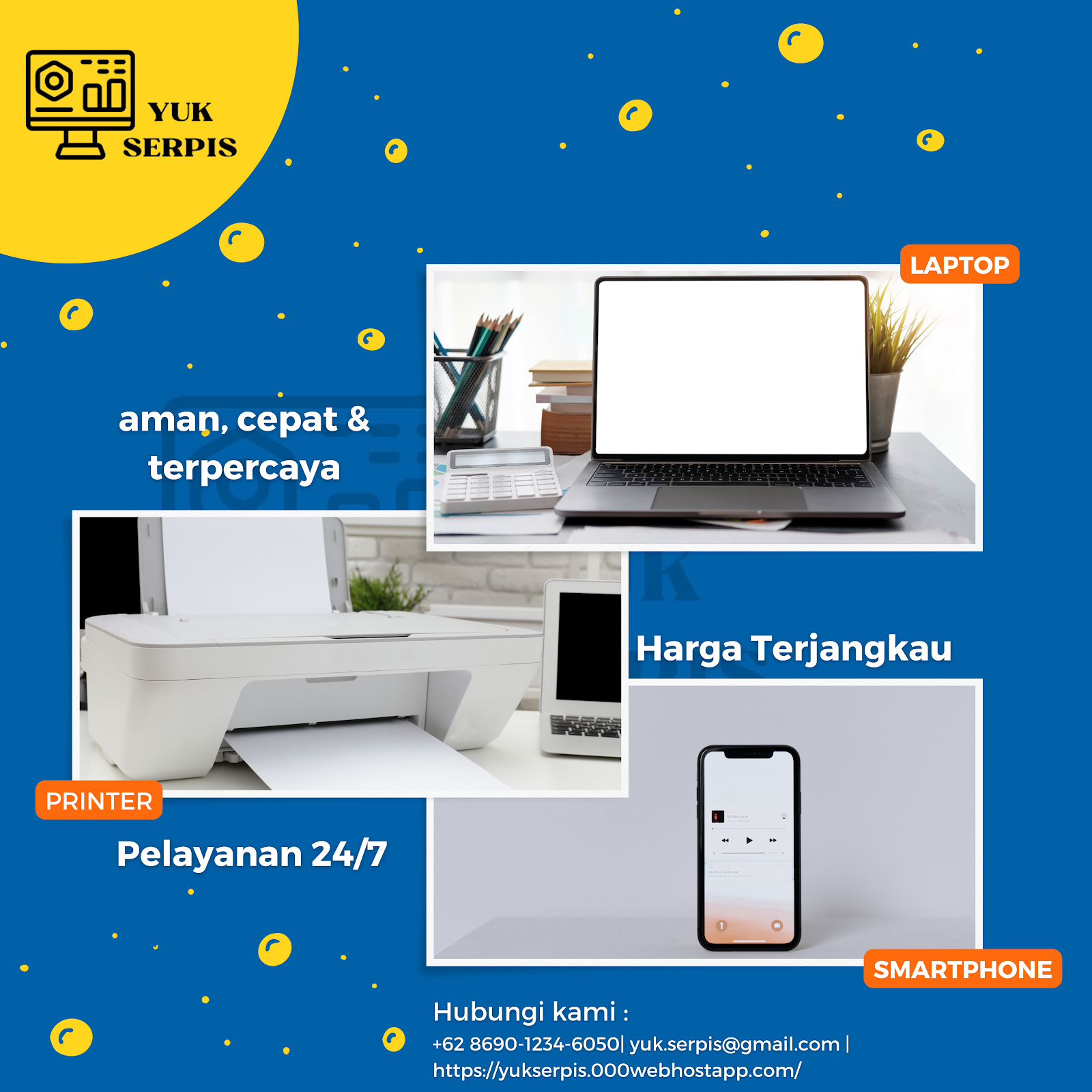 Di zaman yang serba digital sekarang ini, alat elektronik sudah menjadi kebutuhan wajib bagi semua orang. Alat-alat terutama Laptop, Printer, dan Smartphone menjadi barang yang sangat diperlukan dan digunakan oleh setiap orang. Namun, Tak jarang ketika alat-alat tersebut rusak, para pengguna bingung harus memperbaiki alat tersebut dimana dan berapa yang harus dikeluarkan oleh pengguna tersebut.
